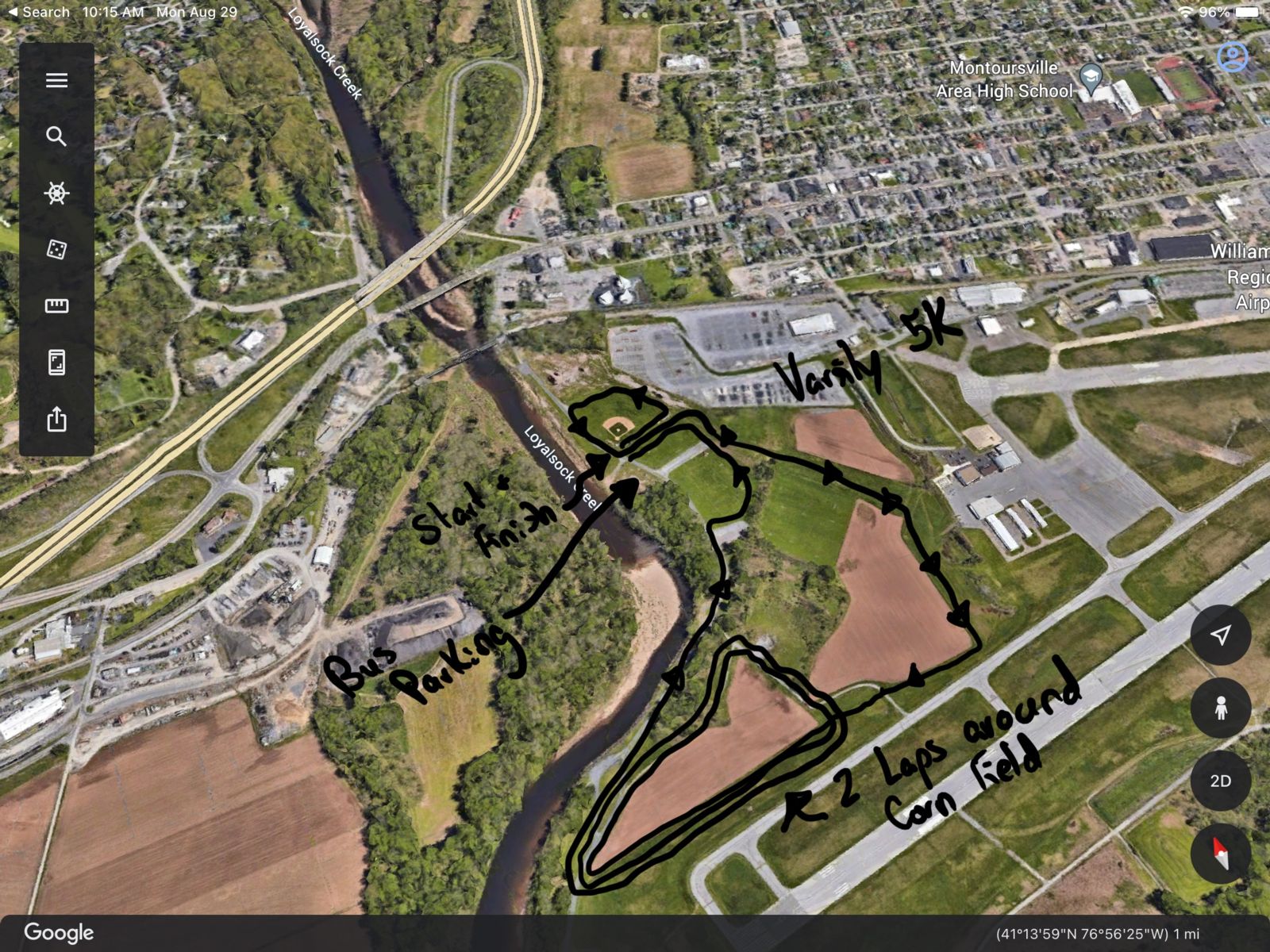 After turning off Rt. 487 go straight between 2 schools. At end of schools, turn left. Field will be in view.
